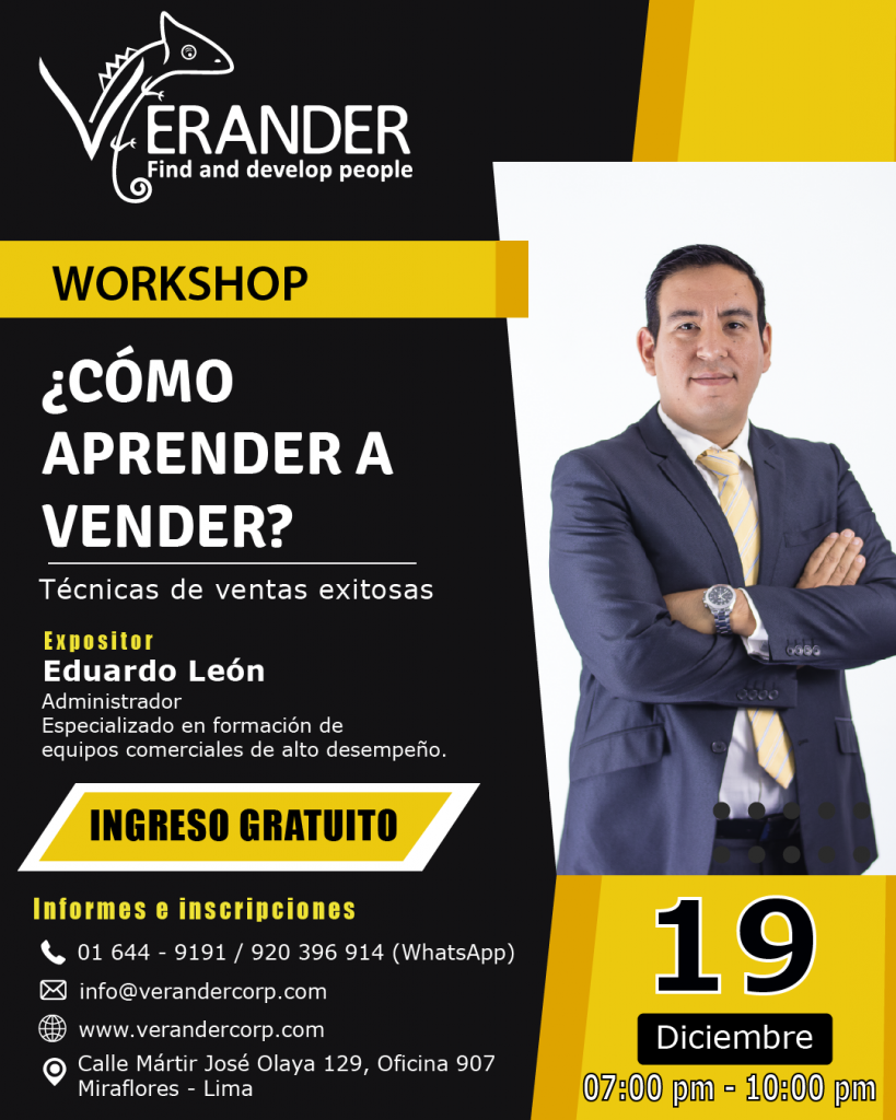 WORKSHOP ¿CÓMO APRENDER A VENDER? Técnicas de ventas exitosas